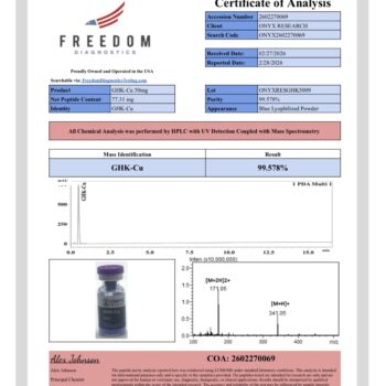 GHK-Cu (Copper Tripeptide-1) is a naturally occurring copper-binding peptide composed of glycyl-L-histidyl-L-lysine. It is widely studied in in vitro settings for its remarkable regenerative, anti-inflammatory, and antioxidant properties. GHK-Cu plays a vital role in tissue remodeling, collagen synthesis, and cell signaling, making it a powerful molecule in regenerative biology and cosmetic science research.